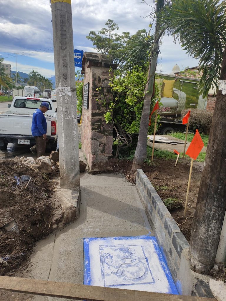 También fue construida la banqueta en la Av. Francisco Medina Ascencio en un tramo considerable para dar seguridad a los peatones.