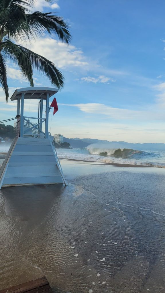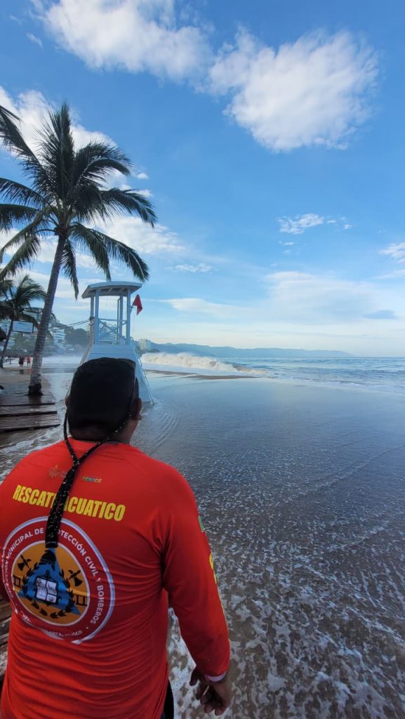 La Dirección de Protección Civil y Bomberos de Puerto Vallarta informó que debido al alto oleaje generado por el huracán Priscilla se mantendrá Bandera Roja en todas las playas del municipio con el fin de garantizar la seguridad de los ciudadanos y visitantes.