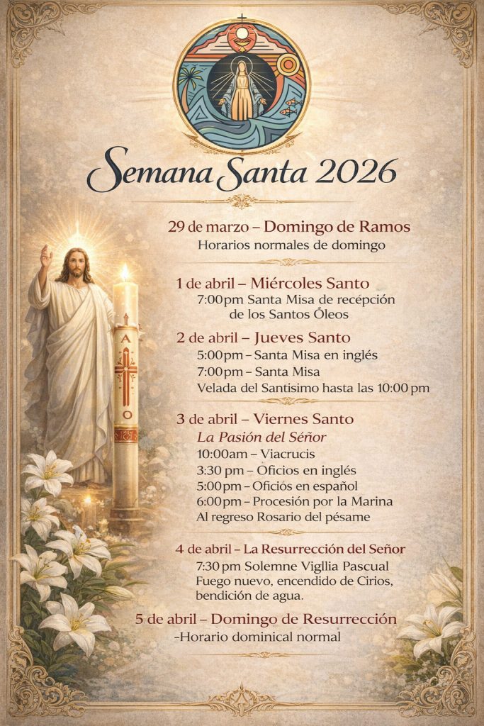 Posteriormente habrá oficios en inglés a las 3:30 pm, oficios en español a las 5:00 pm, pues a partir del Viacrucis no se celebran misas hasta la de Resurrección.