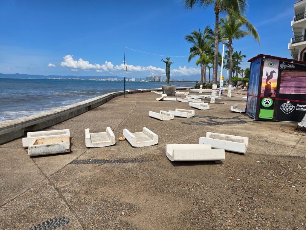 La fuerza del golpeteo de las olas a causa de la marejada que dejó el huracán “Priscilla” a su paso por Puerto Vallarta, provocó algunos daños en el malecón, así como afectaciones menores en la parte de la franja turística.