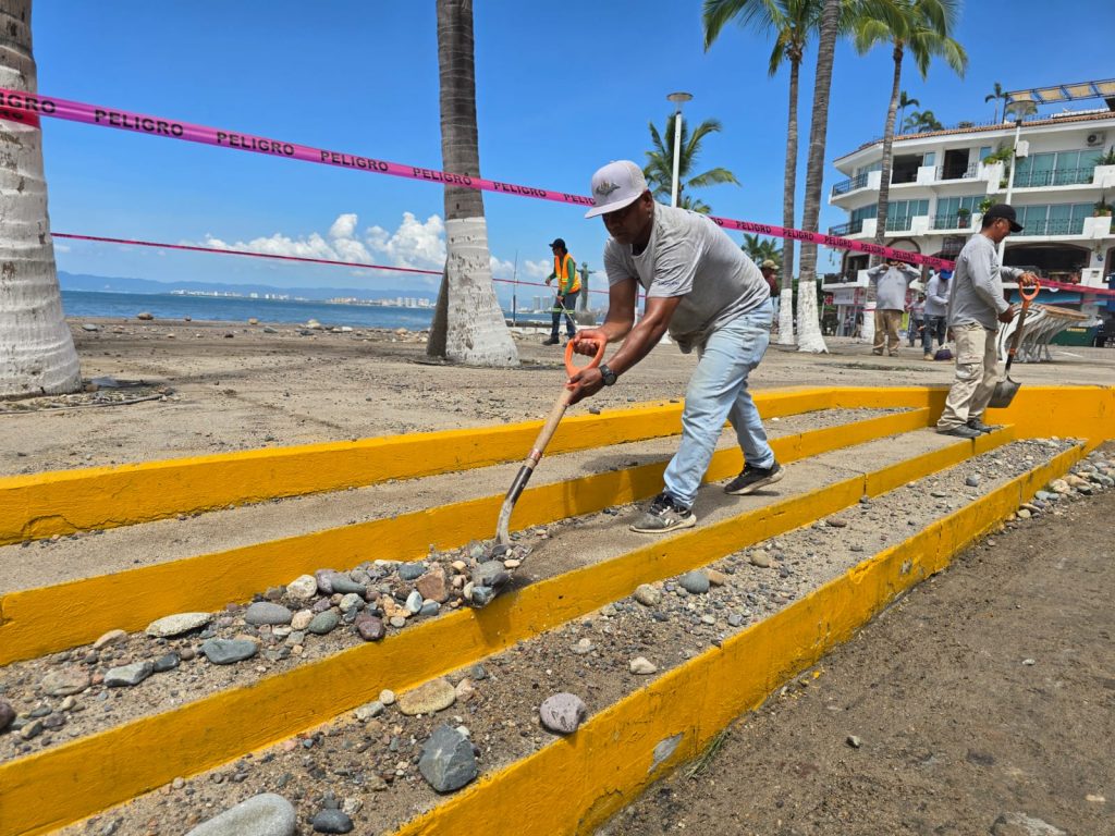 En la playa Las Glorias, las autoridades detectaron bocas de tormenta obstruidas, por lo que se coordinan con otras dependencias municipales para liberar el flujo de agua y evitar encharcamientos.