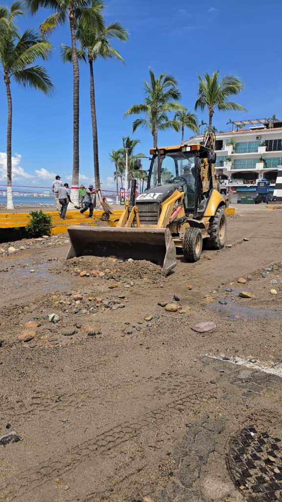 “En Puerto Vallarta tenemos marea de tormenta, prácticamente desde la zona de la Api, donde llegan los cruceros, hasta el Malecón de Puerto Vallarta; tenemos inundaciones desde la franja de playa hasta la avenida Medina Ascencio. Hay afectaciones a comercios y a vehículos, no tenemos personas lesionadas”.