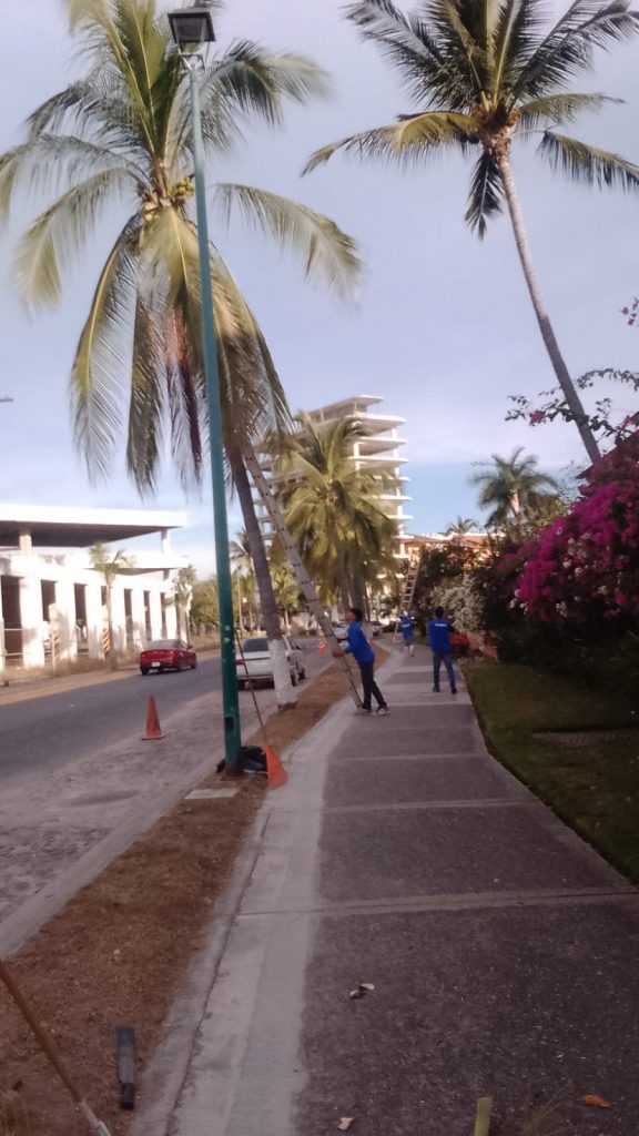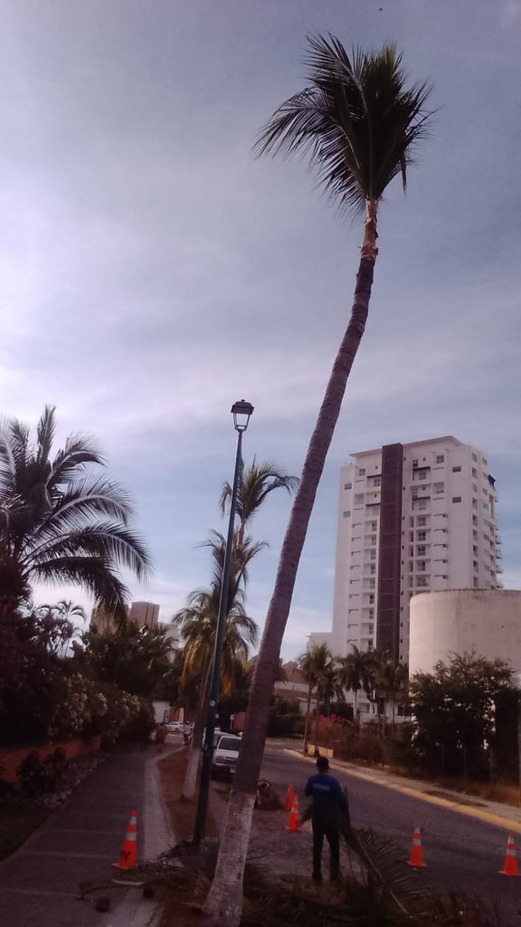 La Asociación de Residentes de Marina Vallarta, a través del personal de Mantenimiento, lleva adelante tareas de poda preventiva en palmeras ubicadas en las principales vialidades del fraccionamiento.