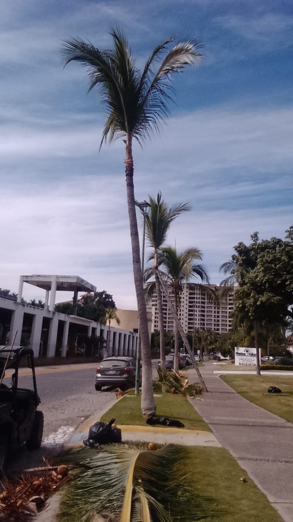 Existen alrededor de 900 palmas de coco en las calles de Marina Vallarta y es lo que en los últimos días ha demandado tiempo y esfuerzo del personal.
