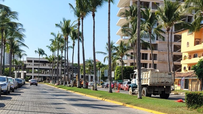 La maquinaria y personal de la empresa contratista se encuentran trabajando este jueves a la altura de los condominios Royal Pacific, Marina Suites, Marina Golf y Marina Sol, e irán avanzando hacia la entrada principal del fraccionamiento.